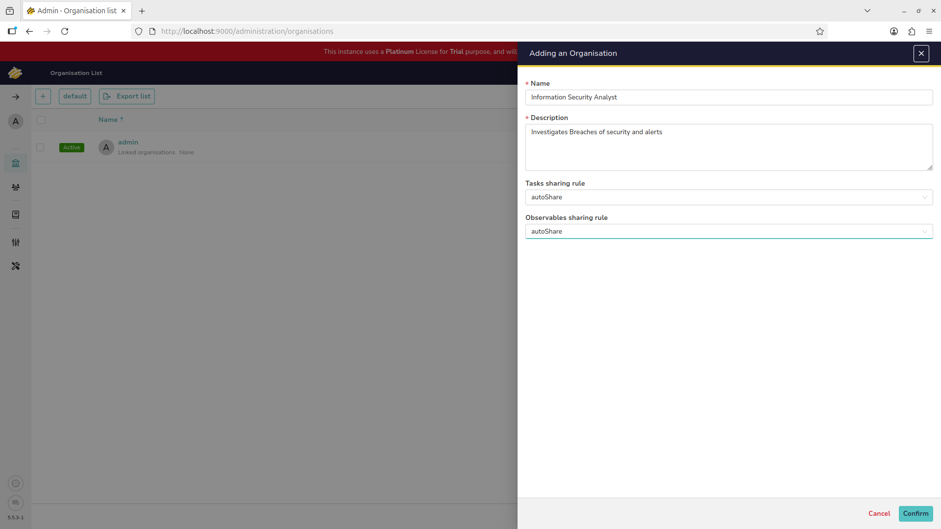 Fill out the information provided to create and Information Security Analyst role for the organization: