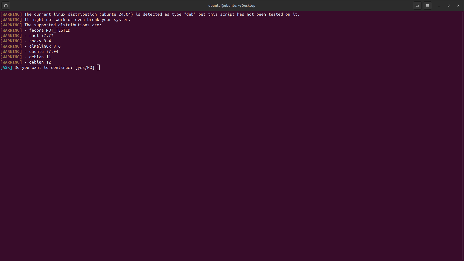 This will start the automated script to install the depencies, type yes if you receive this message: