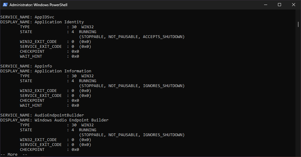 C:\Users\ITLab.Center>sc query | more