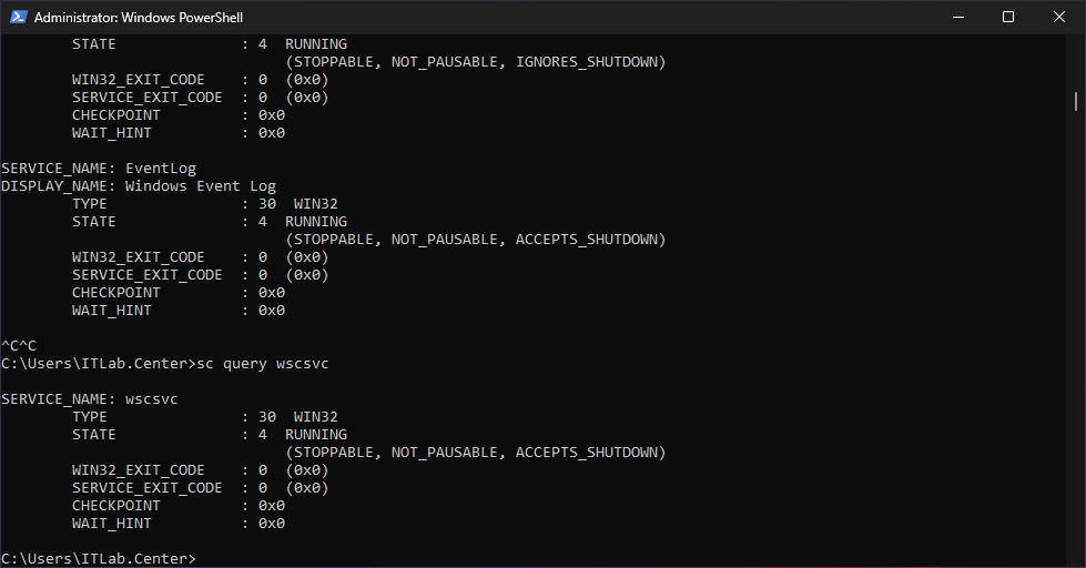 C:\Users\ITLab.Center>sc query wscsvc