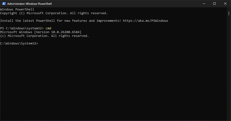 PS C:\Windows\system32> cmd