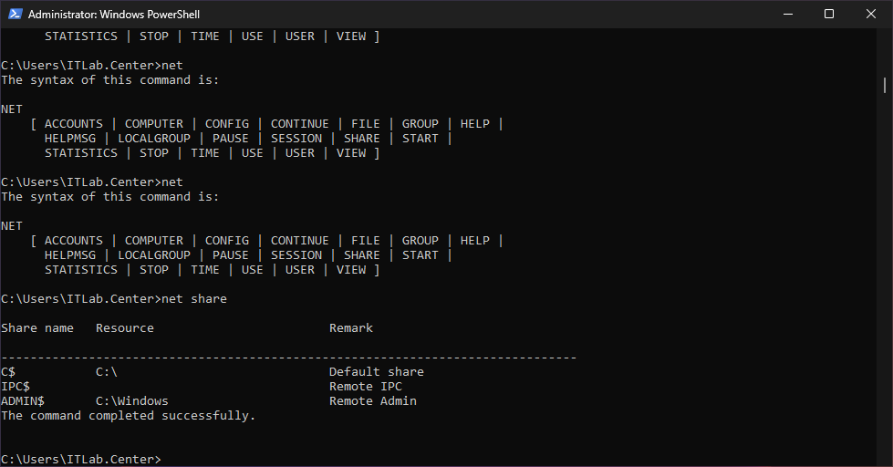 C:\Users\ITLab.Center>net share