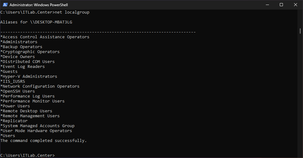 C:\Users\ITLab.Center>net localgroup