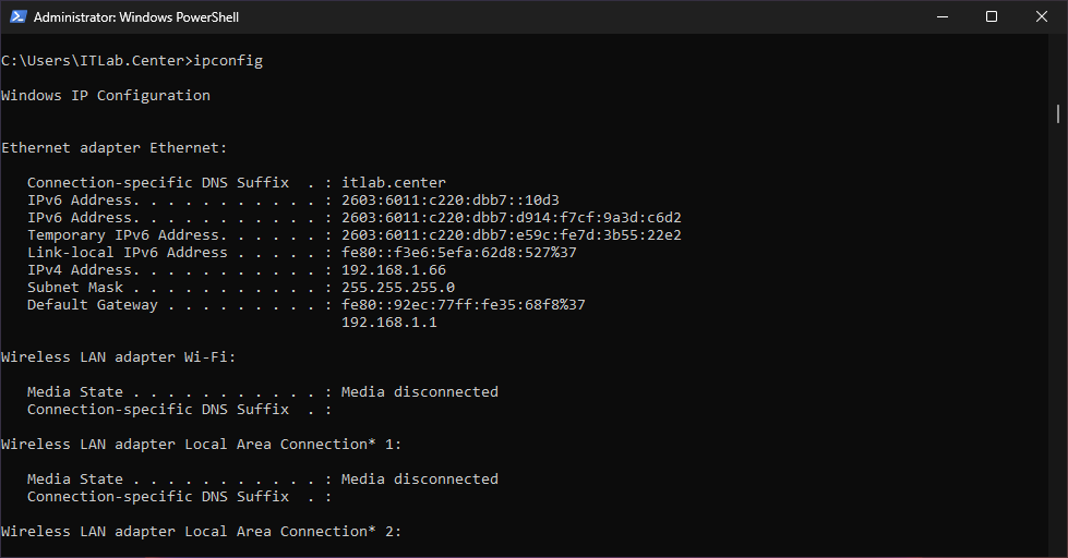 C:\Users\ITLab.Center>ipconfig