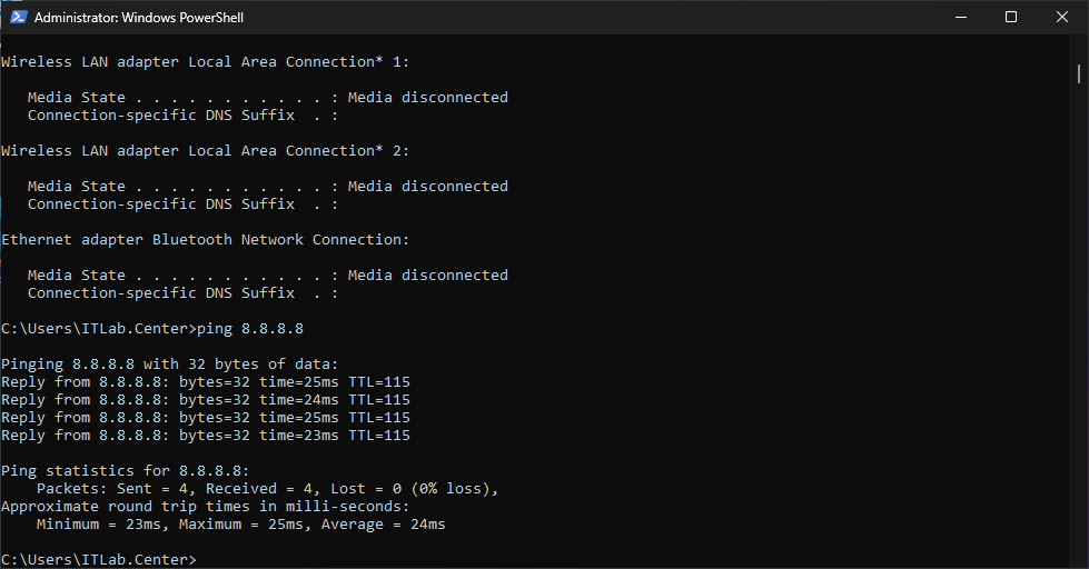 C:\Users\ITLab.Center>ping 8.8.8.8