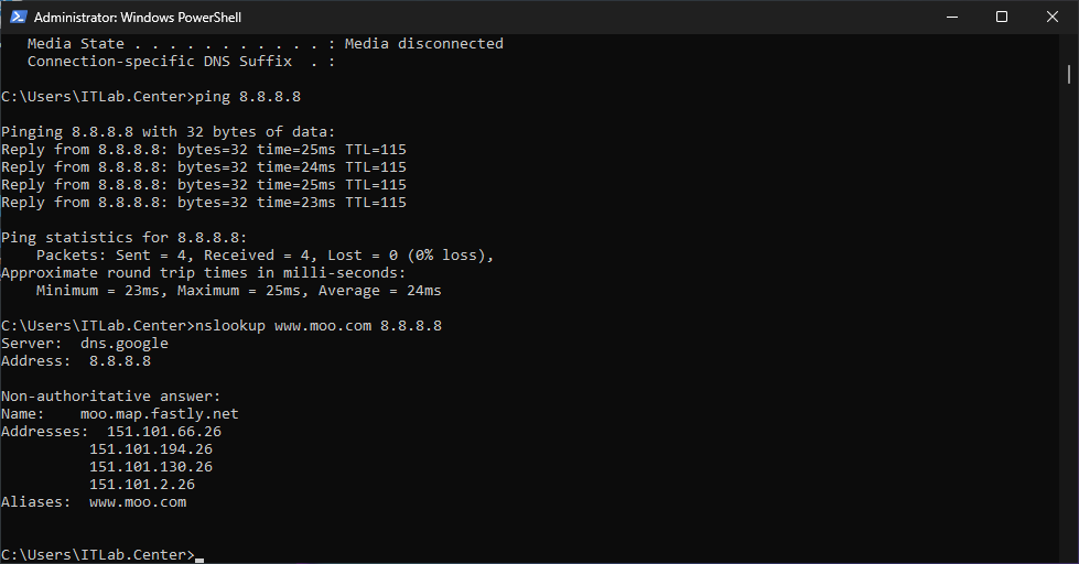 C:\Users\ITLab.Center>nslookup www.moo.com 8.8.8.8