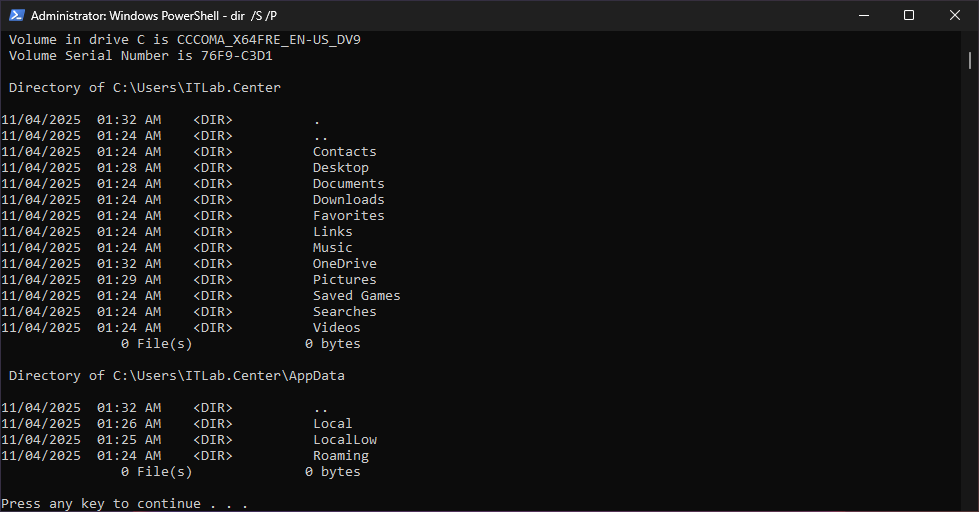 C:\Users\ITLab.Center>dir /S /P