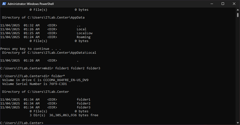C:\Users\ITLab.Center>mkdir folder1 folder2 folder3